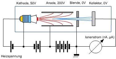 Im Gegensatz zu der Kanalstrahlquelle haben die erzeugten Ionen aufgrund