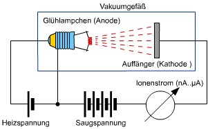 Volt wird man je nach Material und Heizspannung Ionenströme im