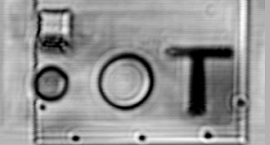 eine Quarzglassscheibe und rechts ein "T" aus Alufolie.