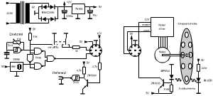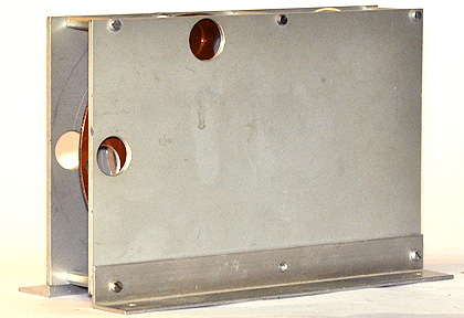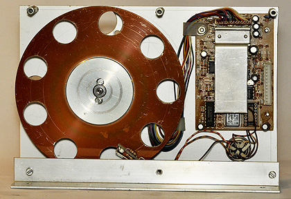 Ein Chopper besteht meist aus einer sich drehenden Scheibe mit Löchern die den Lichtstrahl periodisch unterbricht. Die Drehzahl der Scheibe und die Anzahl der Löcher bestimmt die Frequenz des Signals. Um unnötig lange Messzeiten zu vermeiden wird gern eine hohe Messfrequenz im Kilohertzbereich verwendet, d.h. man benötigt hohe Drehzahlen und oder viele Löcher. Als Motor wird hier der Antrieb des Scannerspiegels aus einem Laserdrucker verwendet. Diese Teile erlauben hohe Drehzahlen bei gleichzeitig hoher Konstanz. Wird zudem die Originaltreiberplatine verwendet ist der Aufbau einfach. Man benötigt nur eine Stromversorgung und einen Generator zur Einstellung der Drehzahl. Hier wurden zwei Generatoren vorgesehen, zum Einen ein Quarzoszillator mit 2MHz der eine Drehzahl von 2367 Umdrehungen pro Minute erzeugt. Mit einer Chopperscheibe gibt das eine Unterbrechungsfrequenz von 355 Hz. Der variable Generator gibt Drehzahlen zwischen 380 und 660 Hz. |