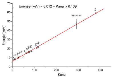 die aus Tabellen bekannte Energie über die Kanalzahl auf erhält