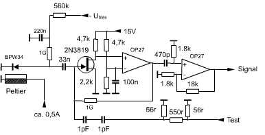 einer Fotodiode BPW34. Die Fotodiode wurde zur Kühlung auf ein