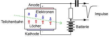 den Halbleiter durchquerendes Teilchen erzeugt durch Ionisation
