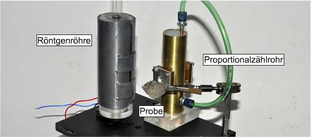 Dazu wird die Probe mit einer radioaktiven Quelle bestrahlt. Die Strahlung