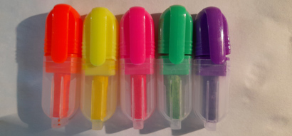 Obbjekte sind auch Textmarker. Bei diesen ist dem Farbstoff ein fluoreszierendes