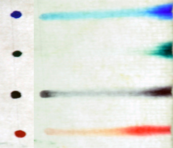 Stoffe wandern verschieden schnell durch das Blatt Papier. |