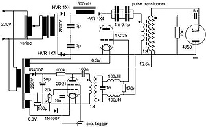 und besteht nur aus einem Netzteil das Hochspannungsimpulse liefert. Die