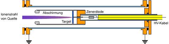 vermieden. In der Hochspannungsleitung zum Target ist eine Zennerdiode