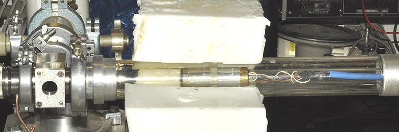 | Das folgende Bild zeigt die Ionenquelle im Betrieb. Das Betriebsgas