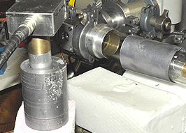 rechte Endflansch wird über ein Strommessgerät mit der Erde verbunden. |