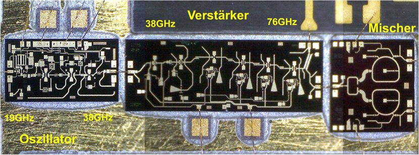 aufgebaut. Die aktiven Elemente sind drei GaAs-Chips von UMS.