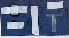 eine Quarzglassscheibe und rechts ein "T" aus Alufolie.