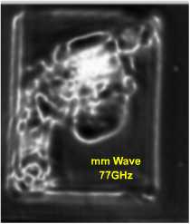 Das rechte Millimeterwellen-Bild zeigt bestenfalls die Umrisse der