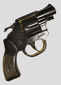 | Der kleine Spielzeug-Revolver wird in seiner Schachtel