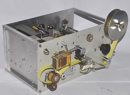 der Frontplatte ist der Bandlauf aufgebaut. Links unten der Bandtransport,