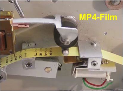 links unten auf der Platte ist eine Vorrichtung zu sehen die das Papierband straff