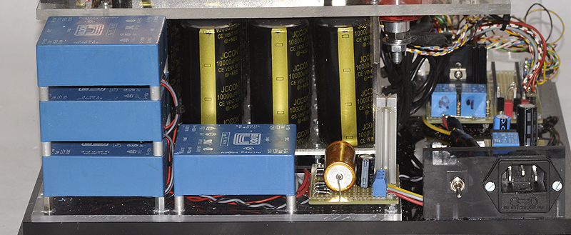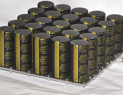 Die Kondensatorbank besteht aus 25 Elkos a 10000 µF
