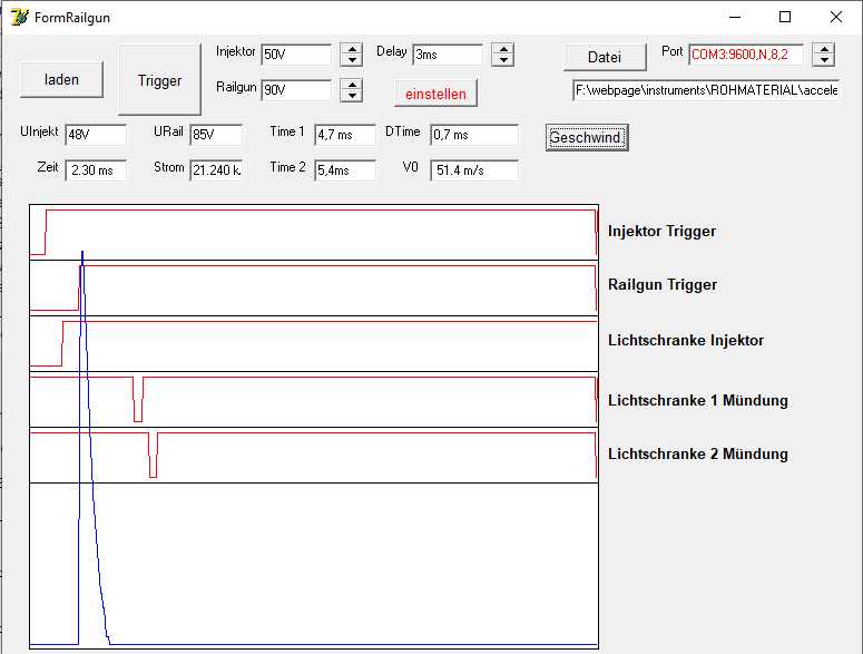 von 48V (Injektor) b.z.w 85V (Railgun ). Die gemessene Mündungsgeschwindigkeit