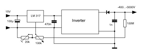 von -400 bis -3000 Volt. Wichtig ist der 20 kOhm Trimmer der die minimale