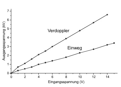 Verdopplerschaltung. Man sieht das die Ausgangsspannung in einem weiten