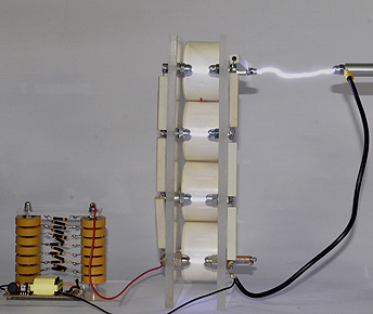 Ein Marxgenerator (insgesamt 10,8nF) kann ca. zweimal pro Sekunde