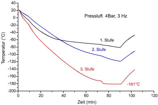 die Temperatur der 3. Stufe von -178°C auf -186 °C. |