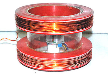 gesteckt. Eine Helmholtzspule besteht aus zwei getrennten Wicklungen