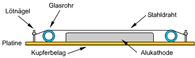 einen Durchmesser von 7,5 mm und die Kathode ist aus 6 mm Flachmaterial