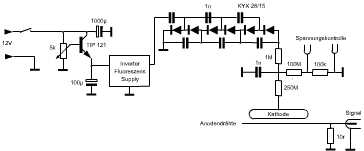 Spannung wegen, aber mit einem 6-stufigem Vervielfacher.