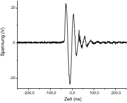 Impulse eine sehr hohe Amplitude von etwa 50V aufweist. Das untere