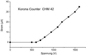 Koronaentladung erscheint am Ausgang des Zählrohrs ein Rauschen. |