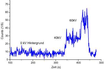 Betriebsspannung an einem Zählrohr von Null an erhöht