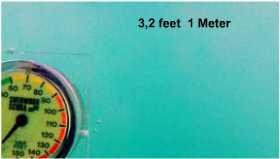 ein mechanischer Tiefenmesser vor der Kamera angebracht. Da die Skale