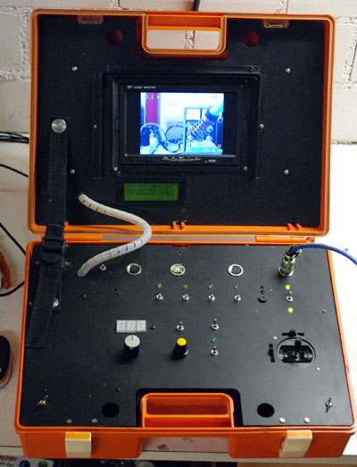 Videobilder und eingeblendeten Daten dient ein LCD-Monitor. Zum Einblenden