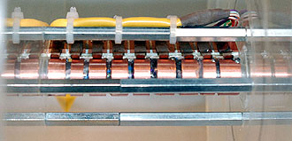 dienen neun Schleifkontakte. Die Kontaktringe sind aus Kupfer, die