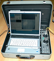 Labtop und Steuereinheit sind in einen Alukoffer eingebaut sodass