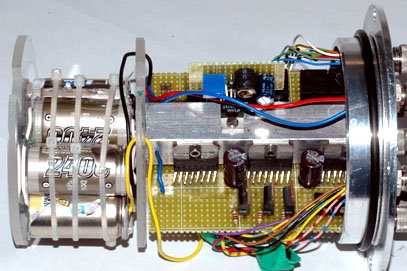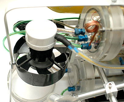 Die obere Röhre ist aus Plexiglas und beinhaltet den Steuerrechner