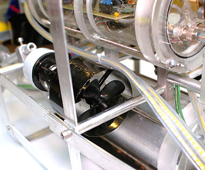 Im Bug und Heck des ROVs sind die beiden senkrechten Antriebe zum Auf-