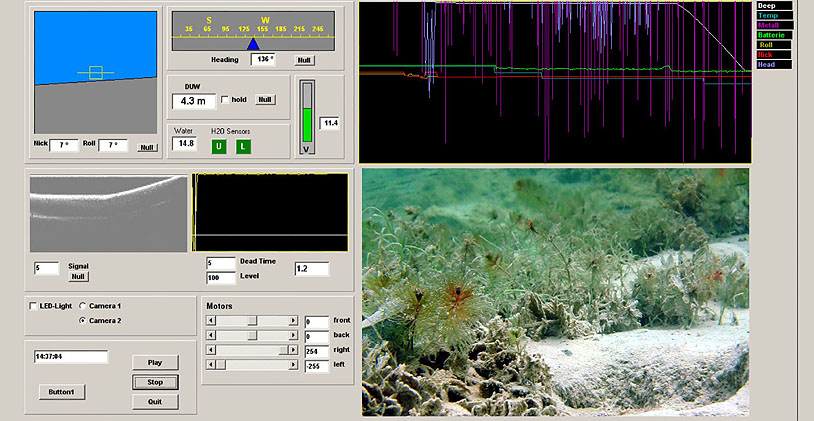 | Das GUI-Programm im Labtop speichert alle wichtigen Daten des ROVs und