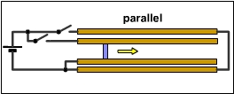 parallel zur den Schienen geschaltet. Eine Abart der Parallelschaltung ist