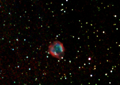 Der Ringnebel M 57 in der Leier ist als bläuliches