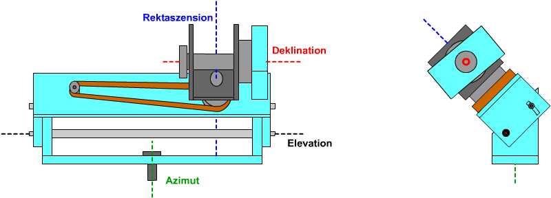 Achse, die Rektaszensionsachse parallel zur Drehachse der Erde eingestellt.
