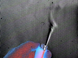 daneben die Flamme mit der heißen Luftströmung. Das rechte Bild