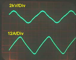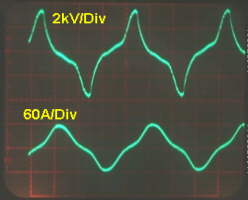 Die Sekundärspannung erreicht Werte von 100kV Uss. Möglicherweise