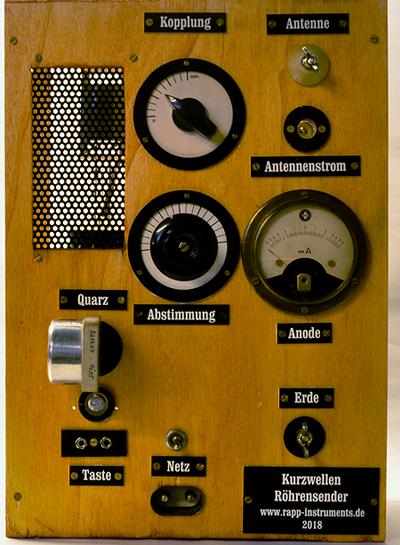 Messgerät zur Anzeige des Anodenstroms. Im unteren Teil links