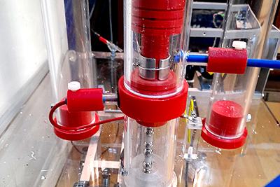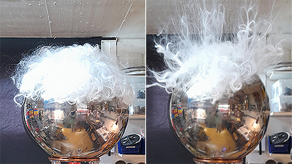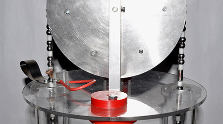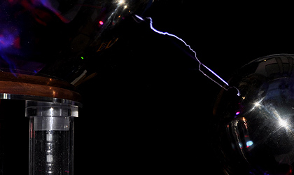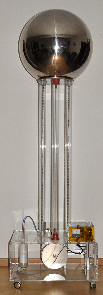 Plexiglasröhren tragen die Hochspannungselektrode, eine Edelstahl-Hohlkugel