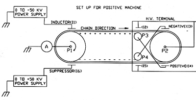 der Kette oder zur Erdelektrode kommt. Im Gegensatz zum originalen Pelletron