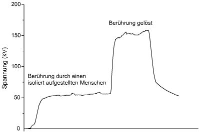 Menschen mit aufzuladen. Es werden nur 50kV erreicht. Das reicht nicht aus die