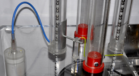 Atmosphäre. Es ist auf einem Plexiglastischen aufgebaut. Vier 150 cm lange