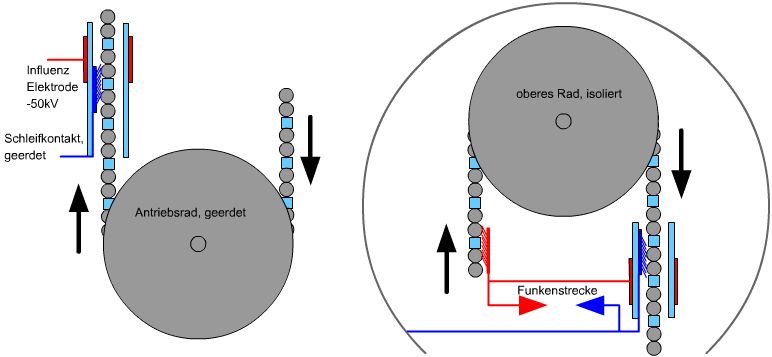 wird hier die Ladung direkt auf die Kette gesprüht und nicht durch Influenz